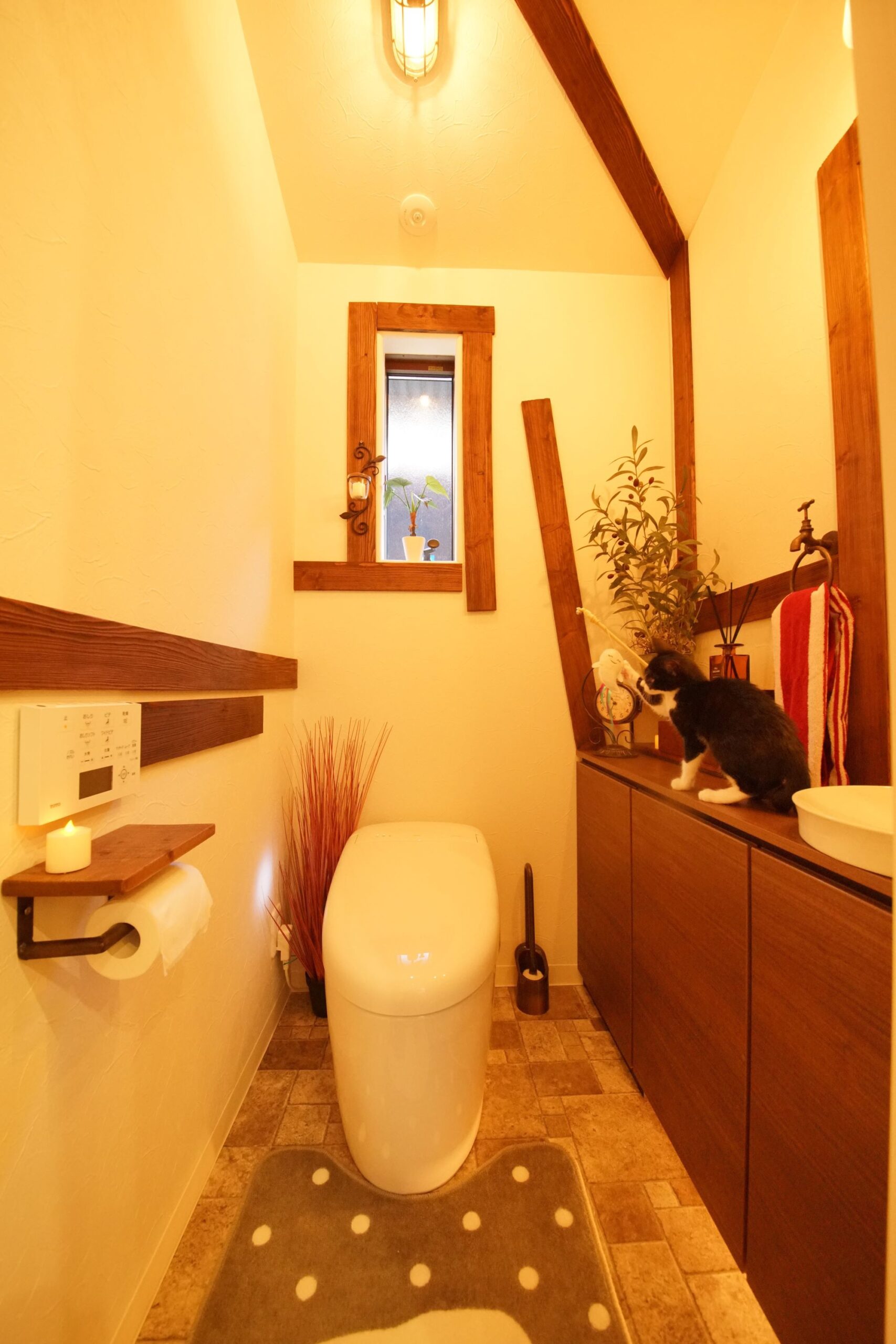 - 大胆にレイアウトした木板でアーリーアメリカン風に