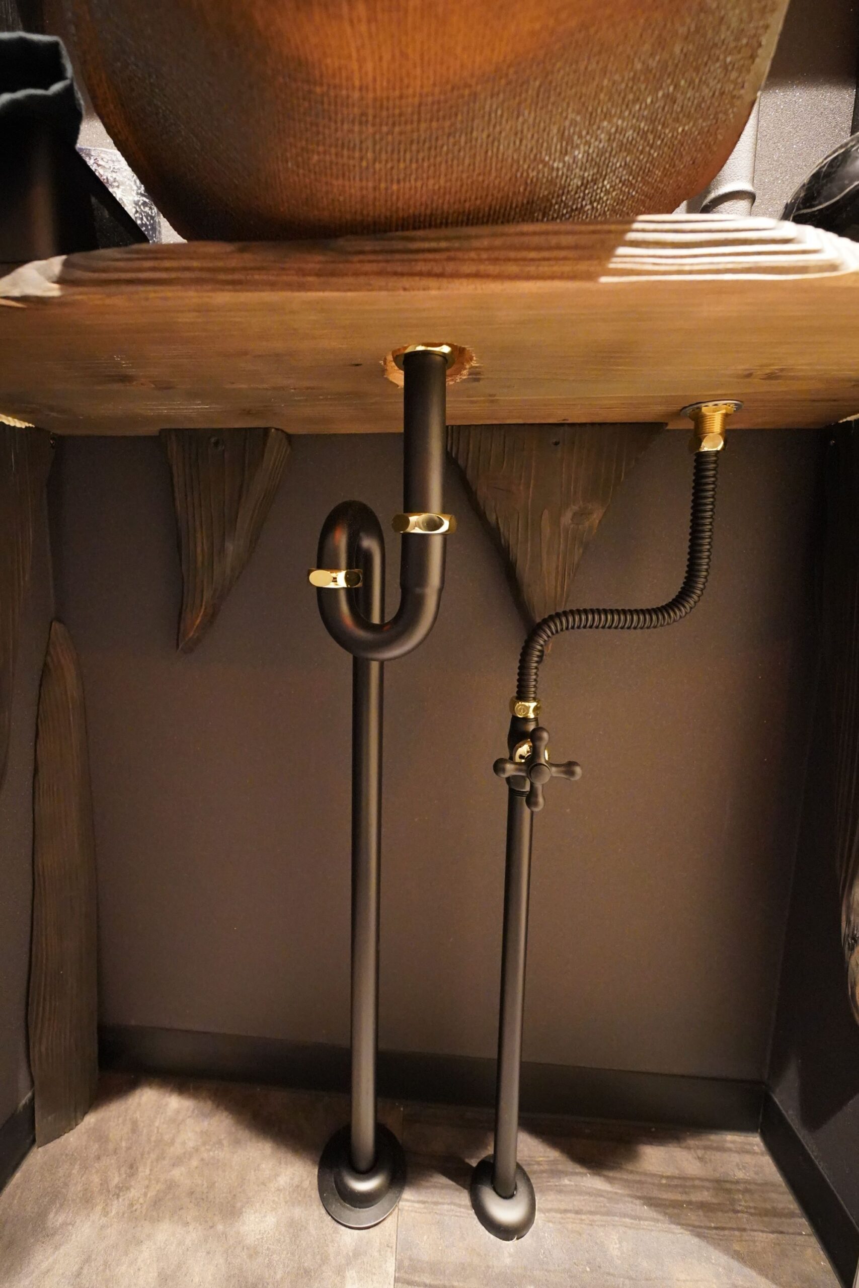 - 黒い給排水管で演出