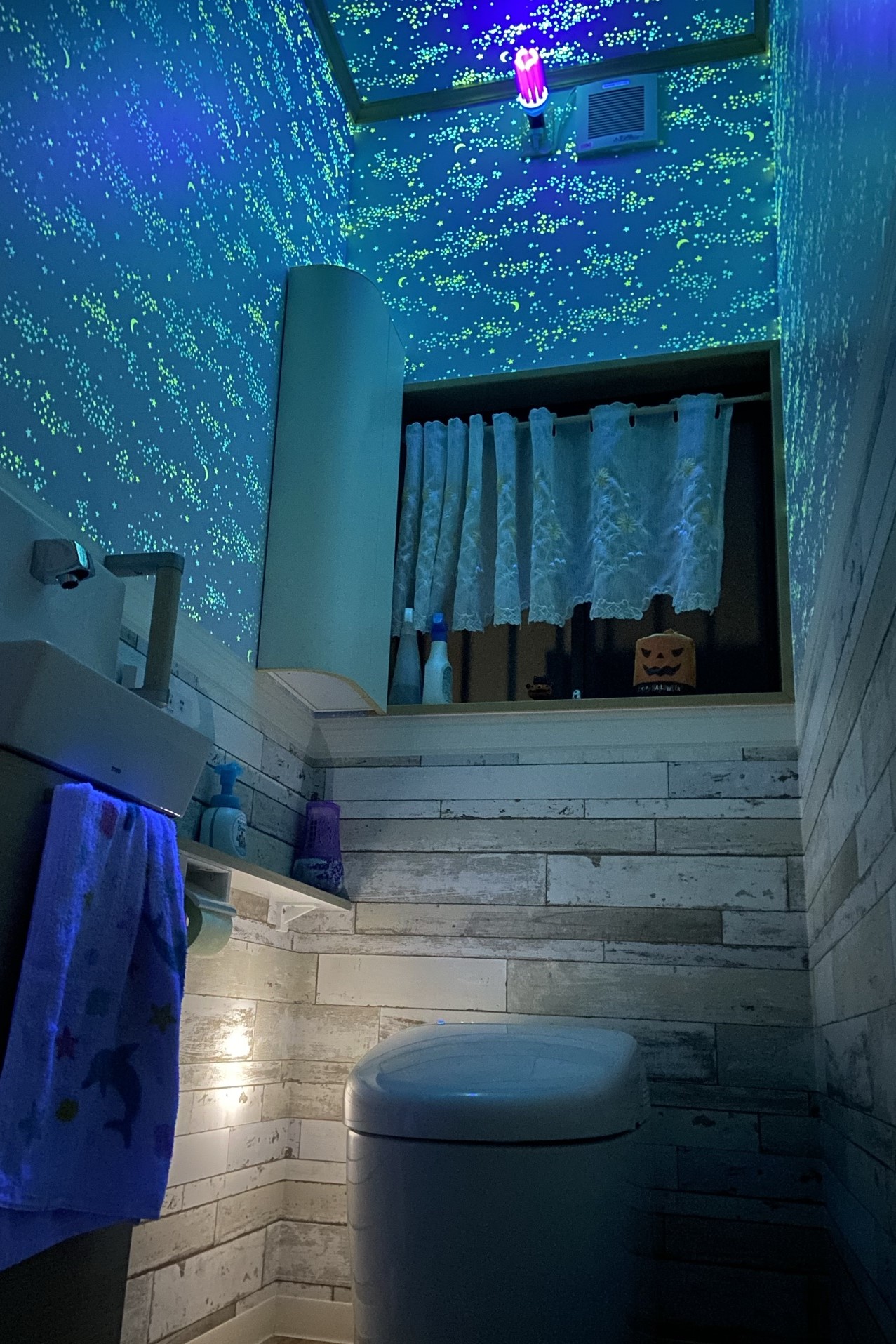 ブラックライト×蓄光クロスで夜空が広がる空間に|トイレリフォーム(三重県四日市市の施工事例)