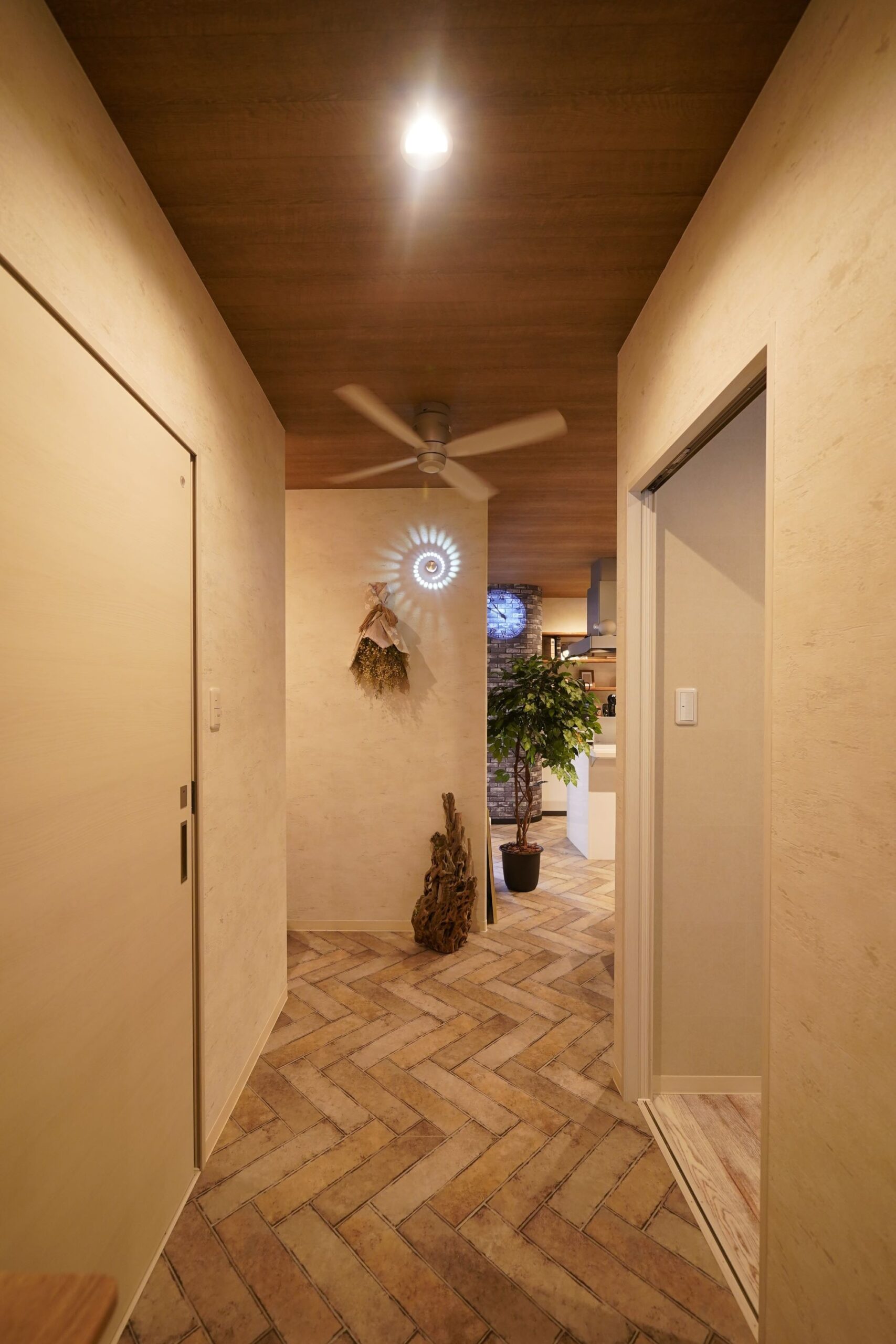 - アクセントになる照明・オブジェで視線誘導。お洒落なホールを際立たせることでLDKへの視線を遮る。