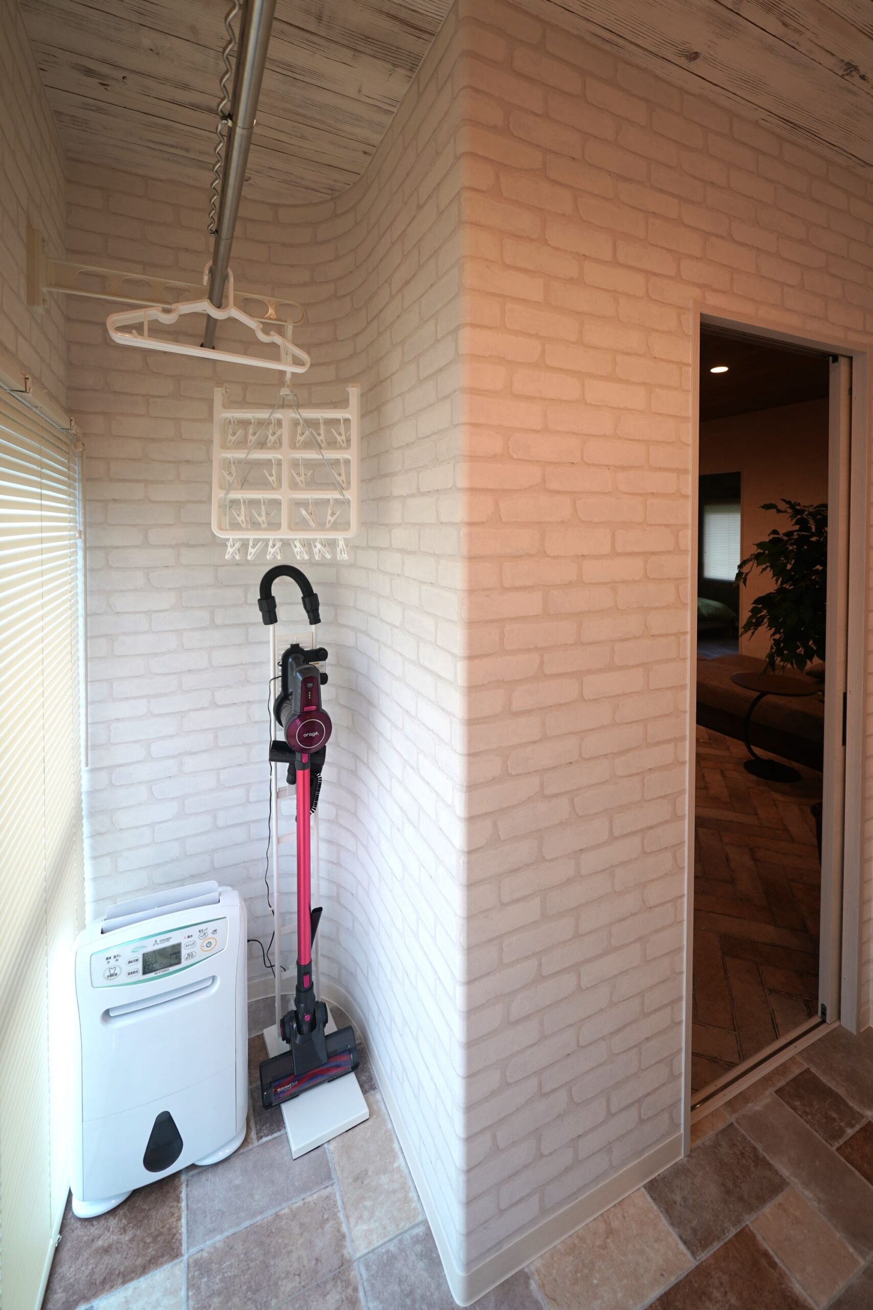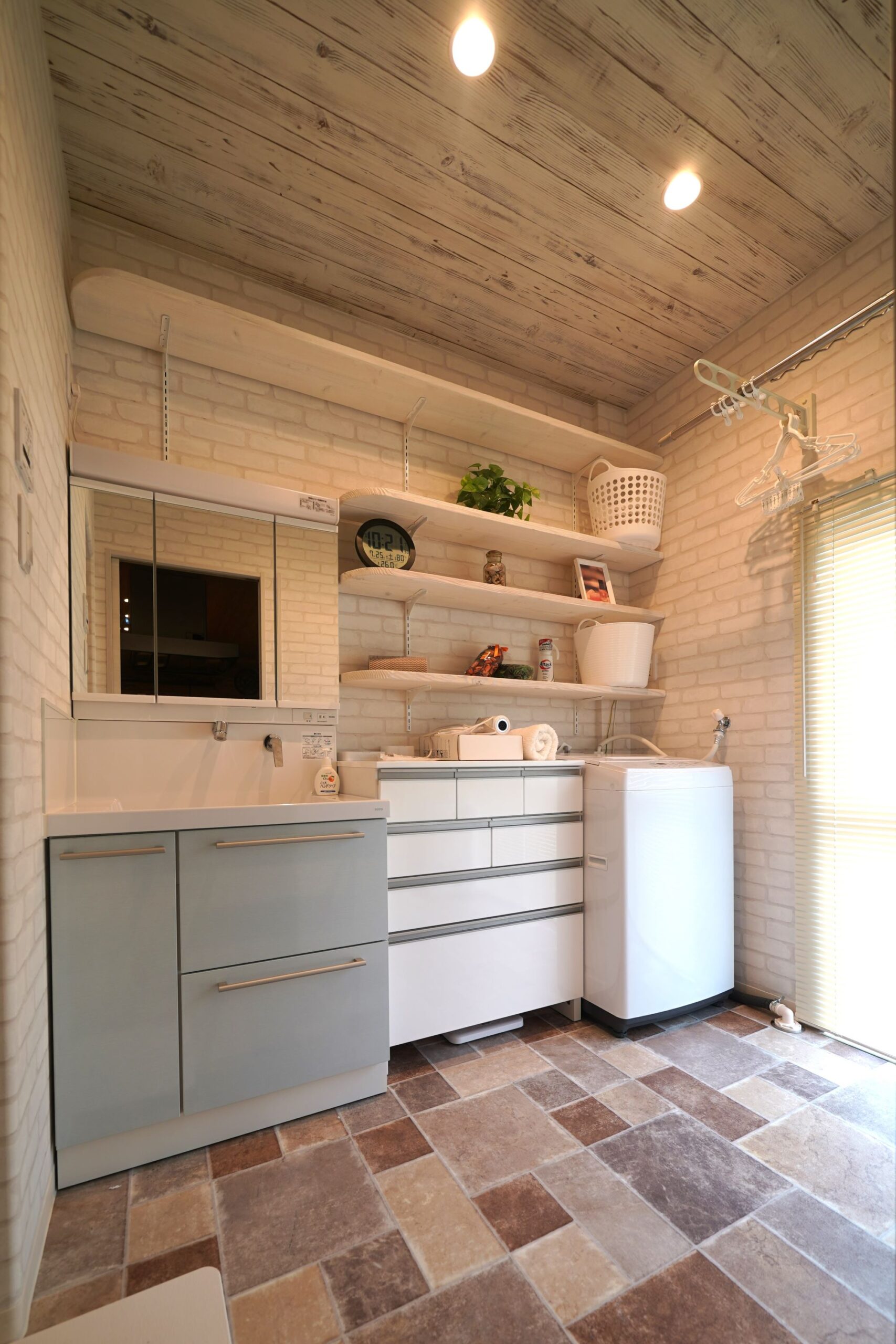南側の掃き出し窓を、洗面室と室内干しができるランドリースペースに活用して、キッチンとの動線も最短にしました。