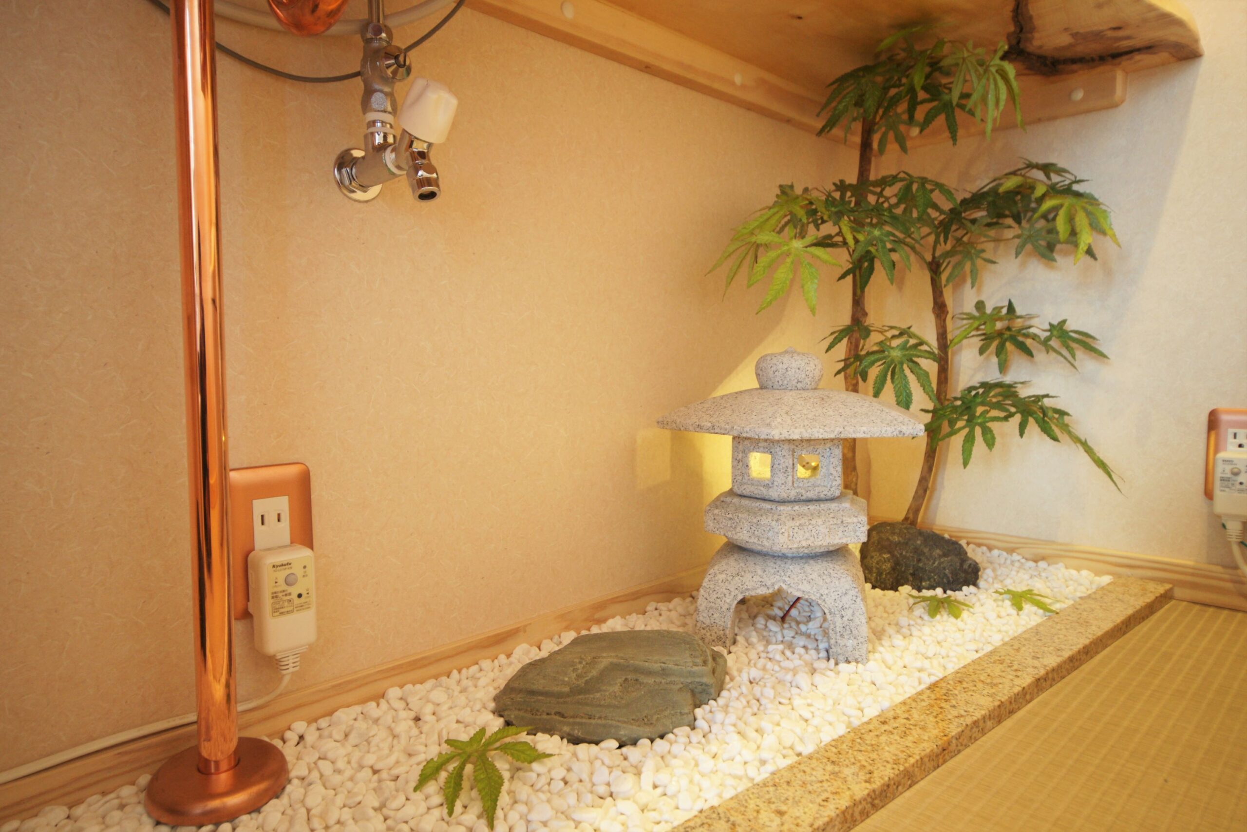 - 手洗い下は玉砂利を敷き詰め小さな坪庭を思わせる雰囲気