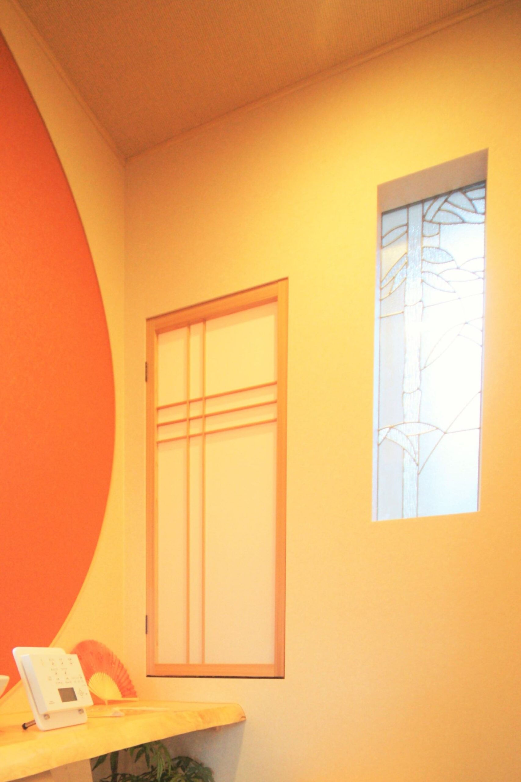 - 正面の内障子とステンドグラス