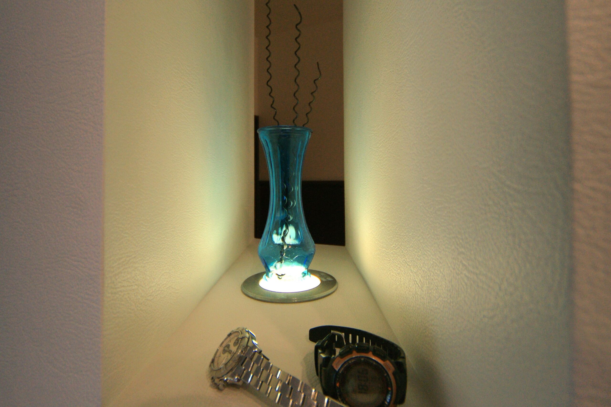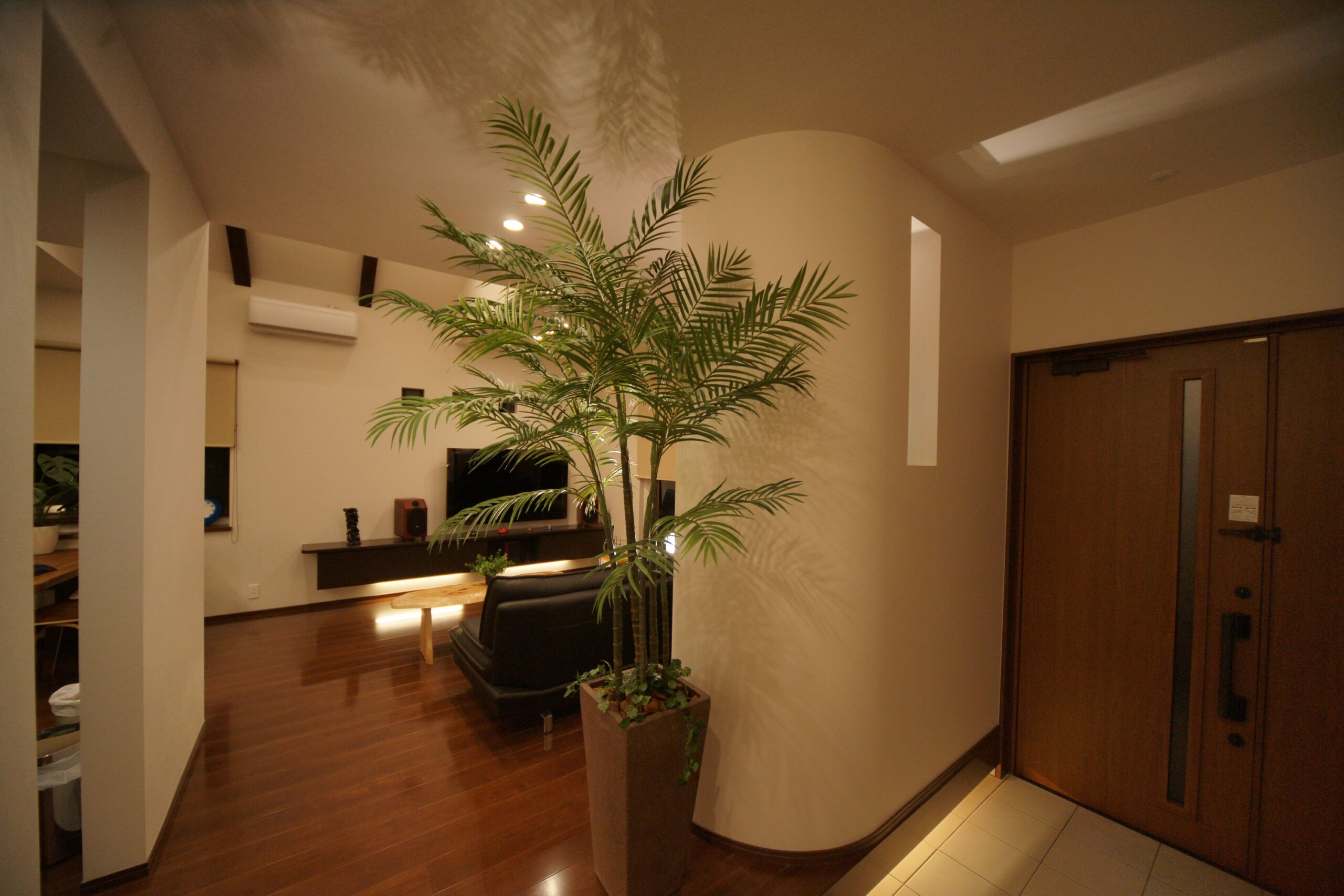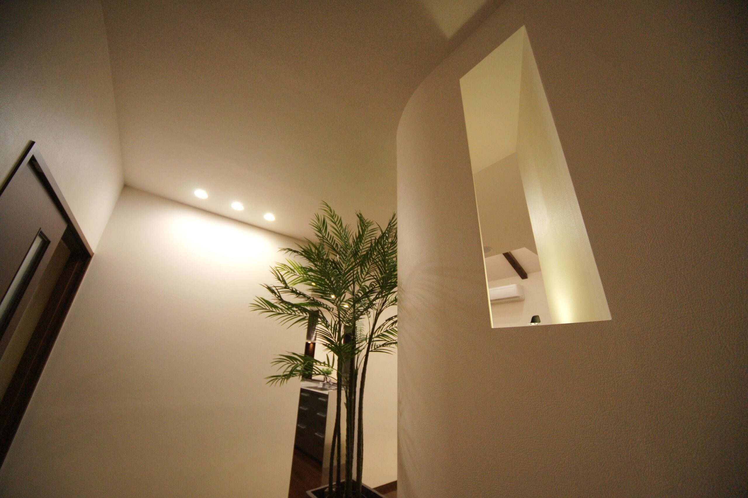 照明は全体を照らすのではなく、あえて陰影が出る位置に配置し、奥行き感を演出