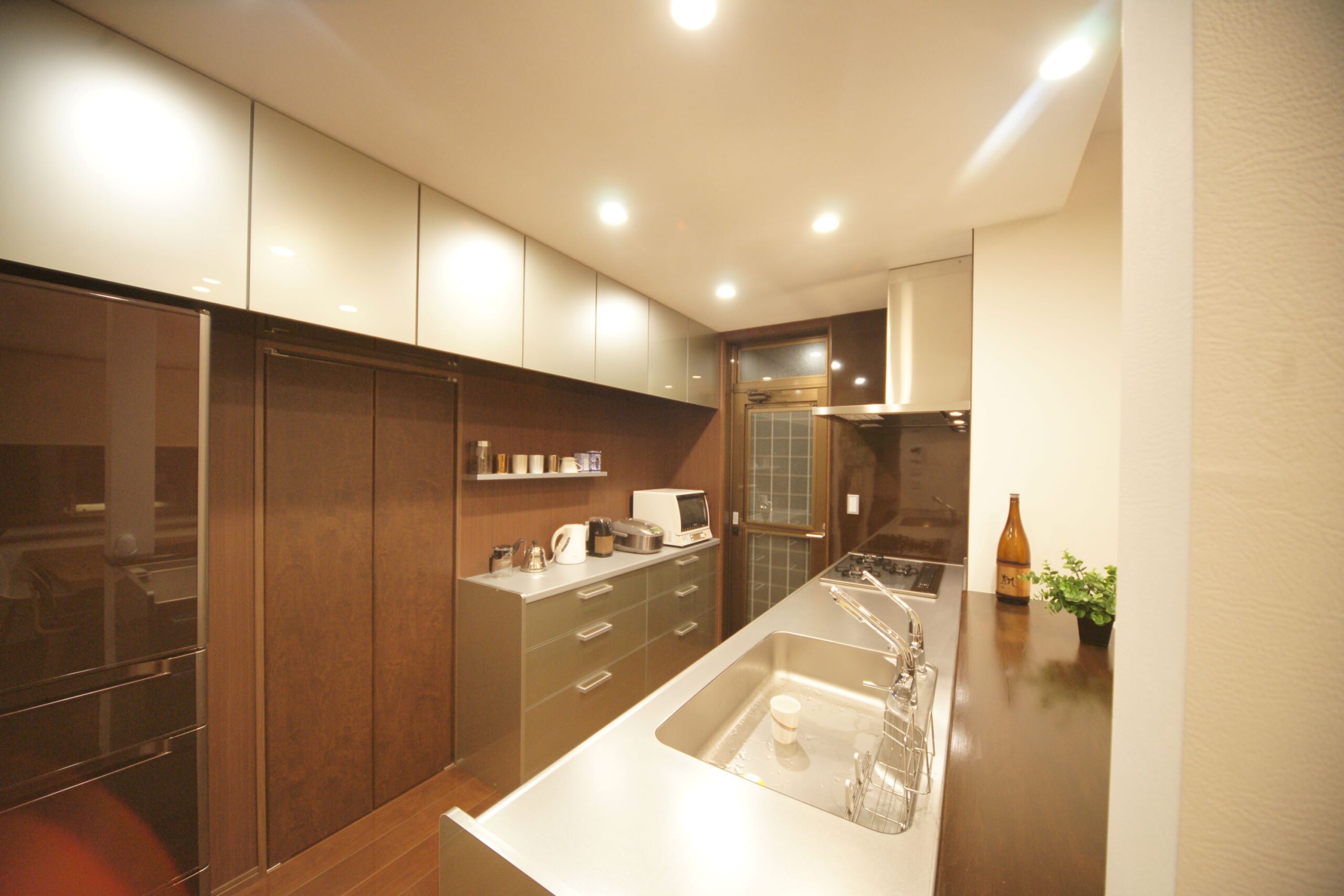 収納量が多く雑多になりがちなキッチン廻りも生活感を出さずに生活できる。