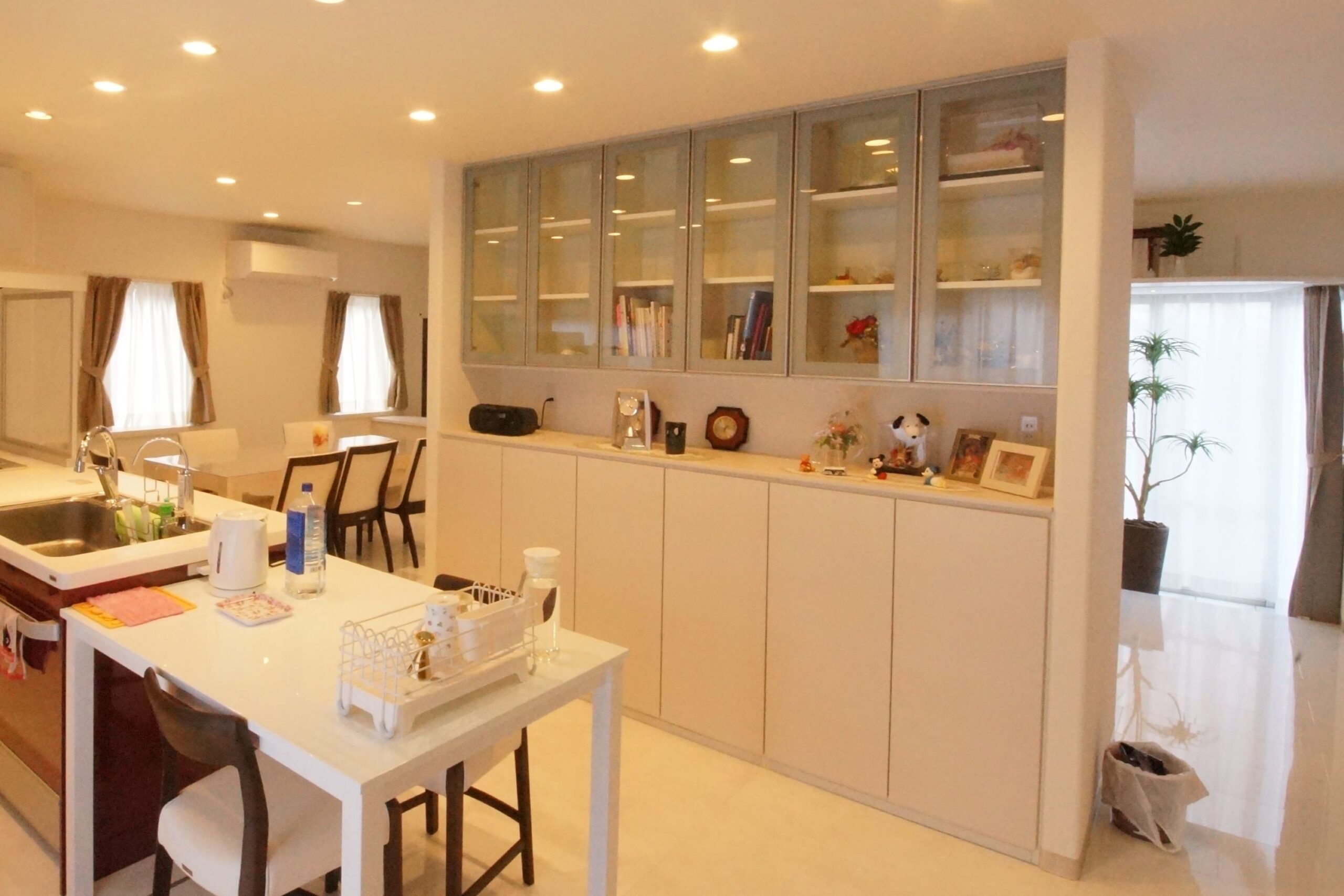 収納がぐんと増えたので、キッチンにいてもリビングにいても、片付けの手間が省け、のんびり過ごせる時間が増えました。