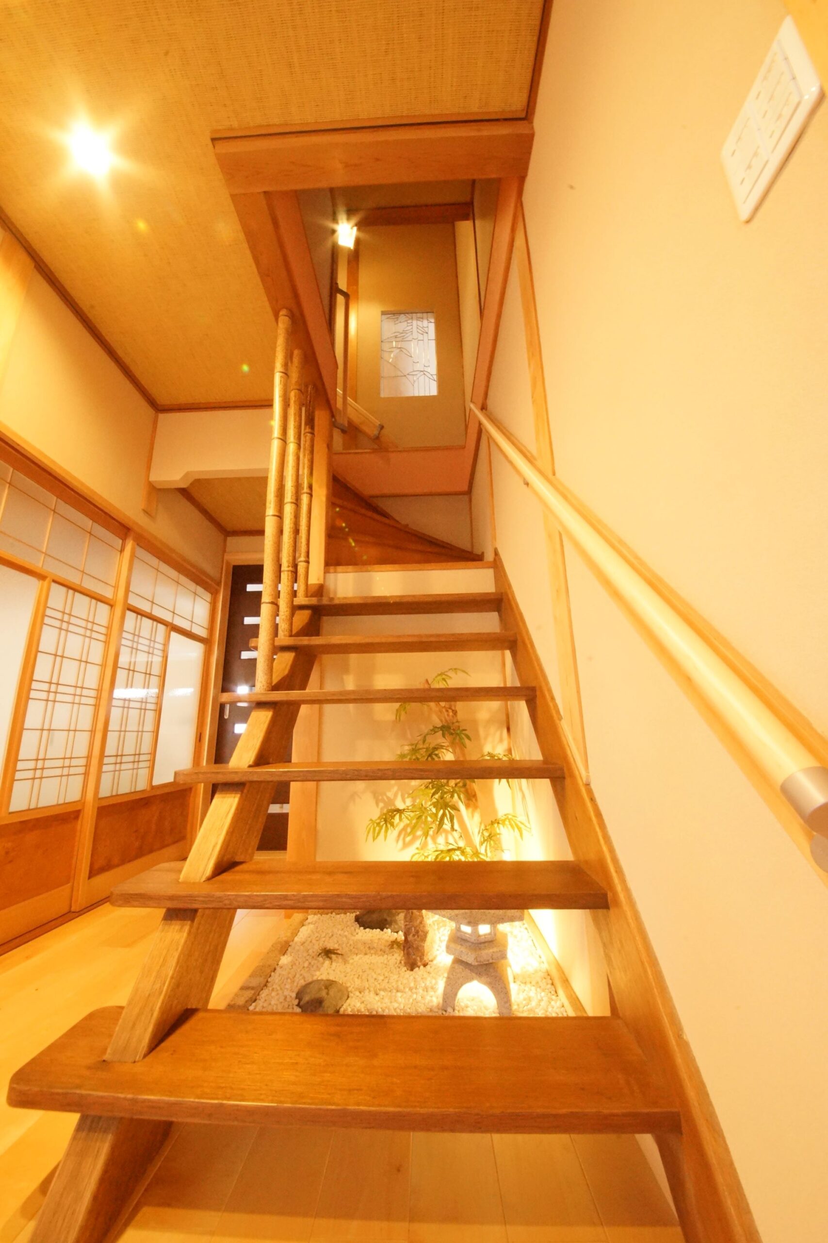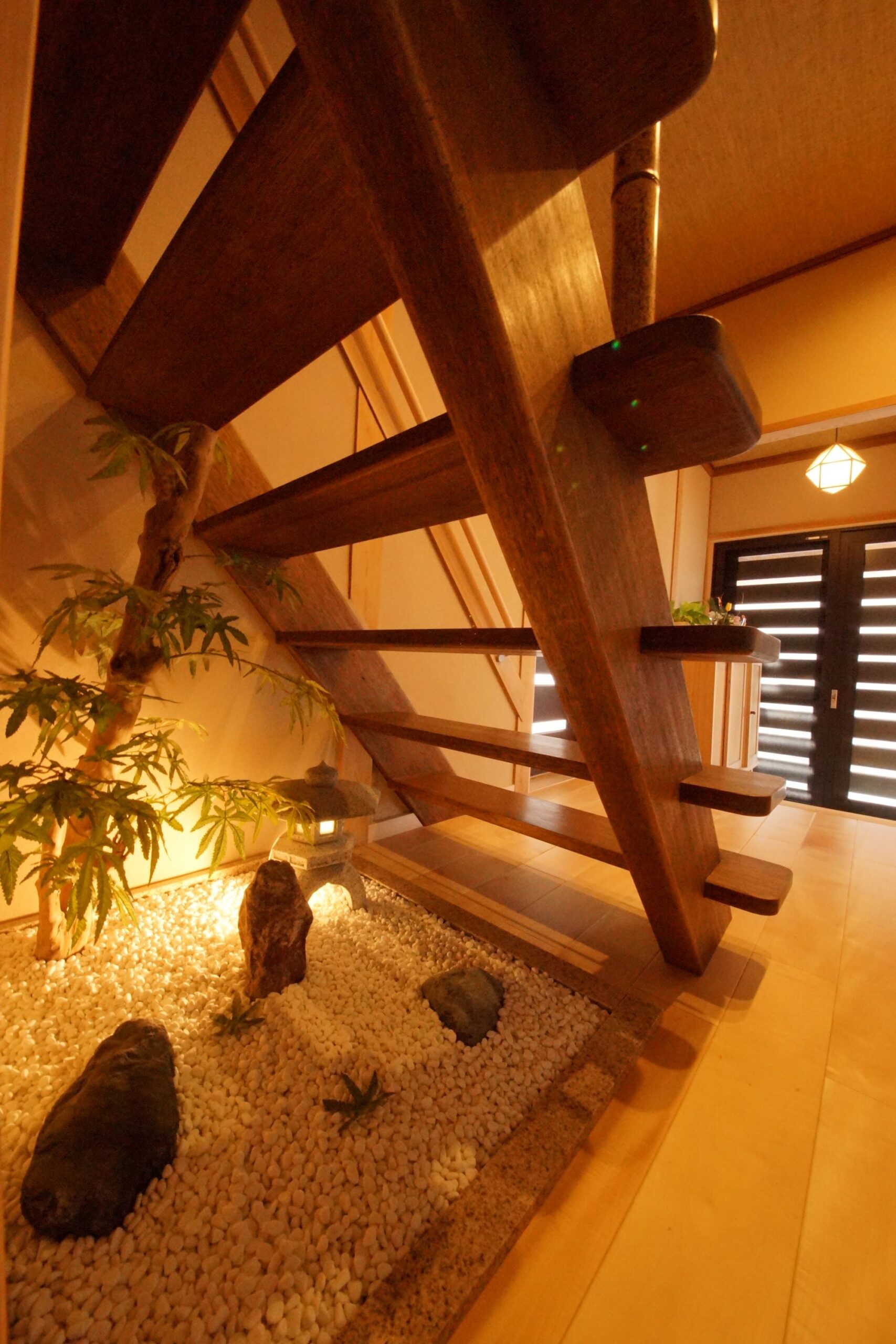 灯りかた 階段下の坪庭などなど すべて計算されていて、我が家の自慢の空間になっています。