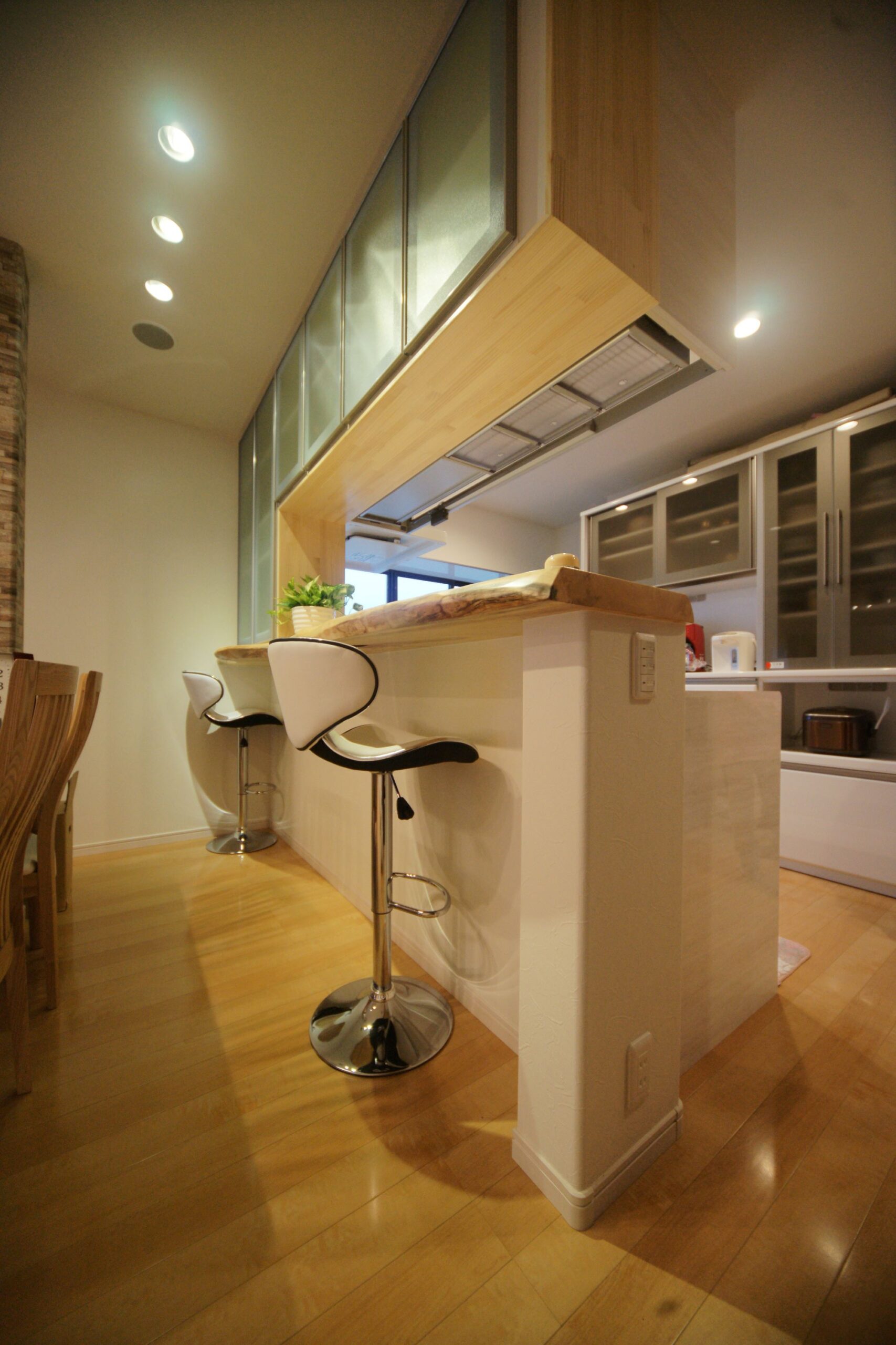 ちょっと一品とキッチンに立つようになったご主人と、カウンターチェアに座る奥様。息子さんが驚いた光景です。