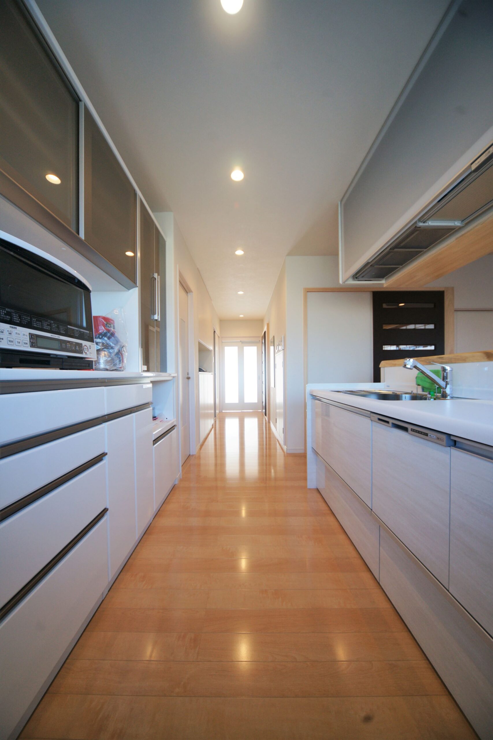 - キッチン~寝室までの動線に一切の出っ張りを無くす様に壁の下地の段階で前出調整