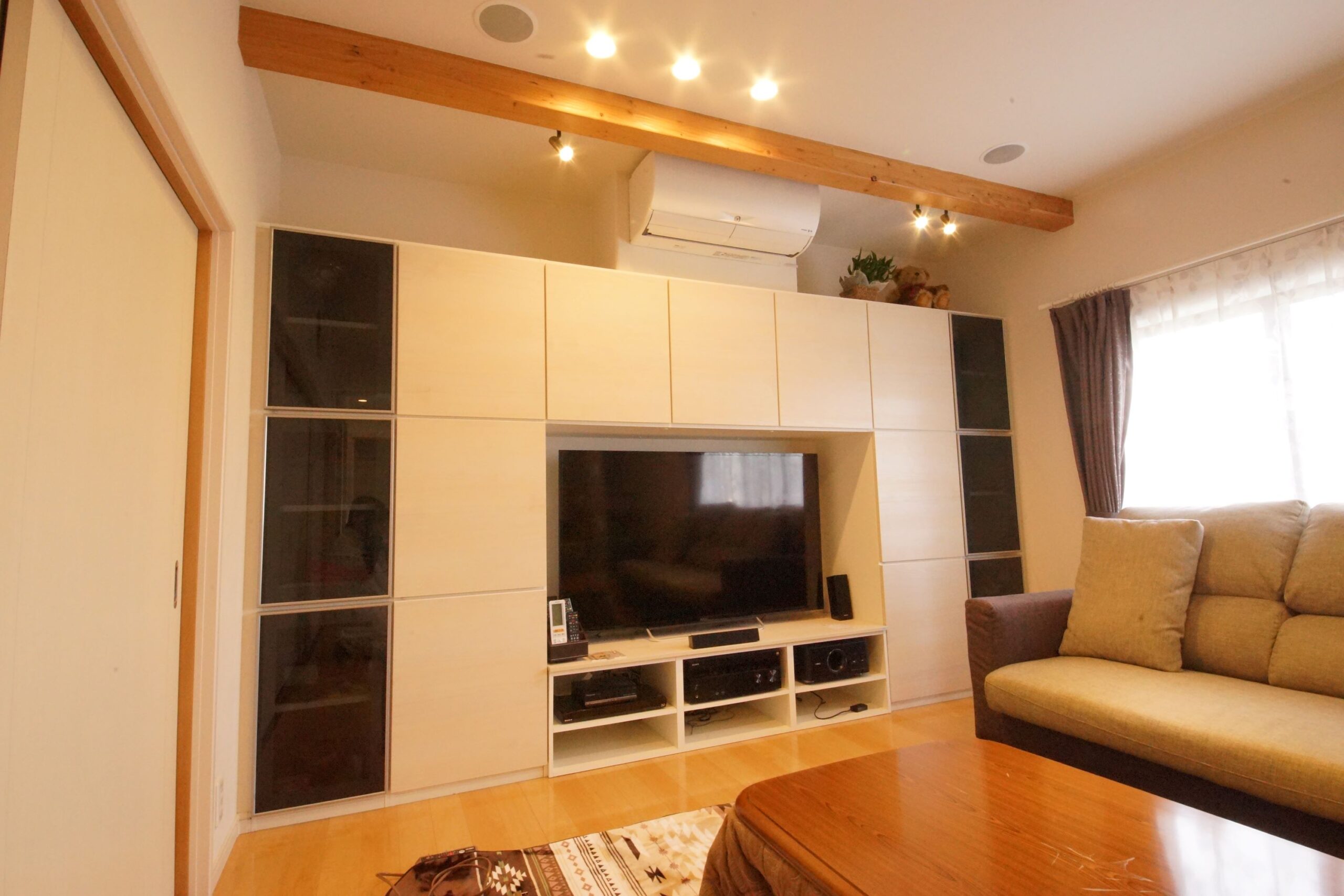 ○広々としたLDKでテレビを見ながらくつろぐ幸せ、夫婦で、孫とともに。