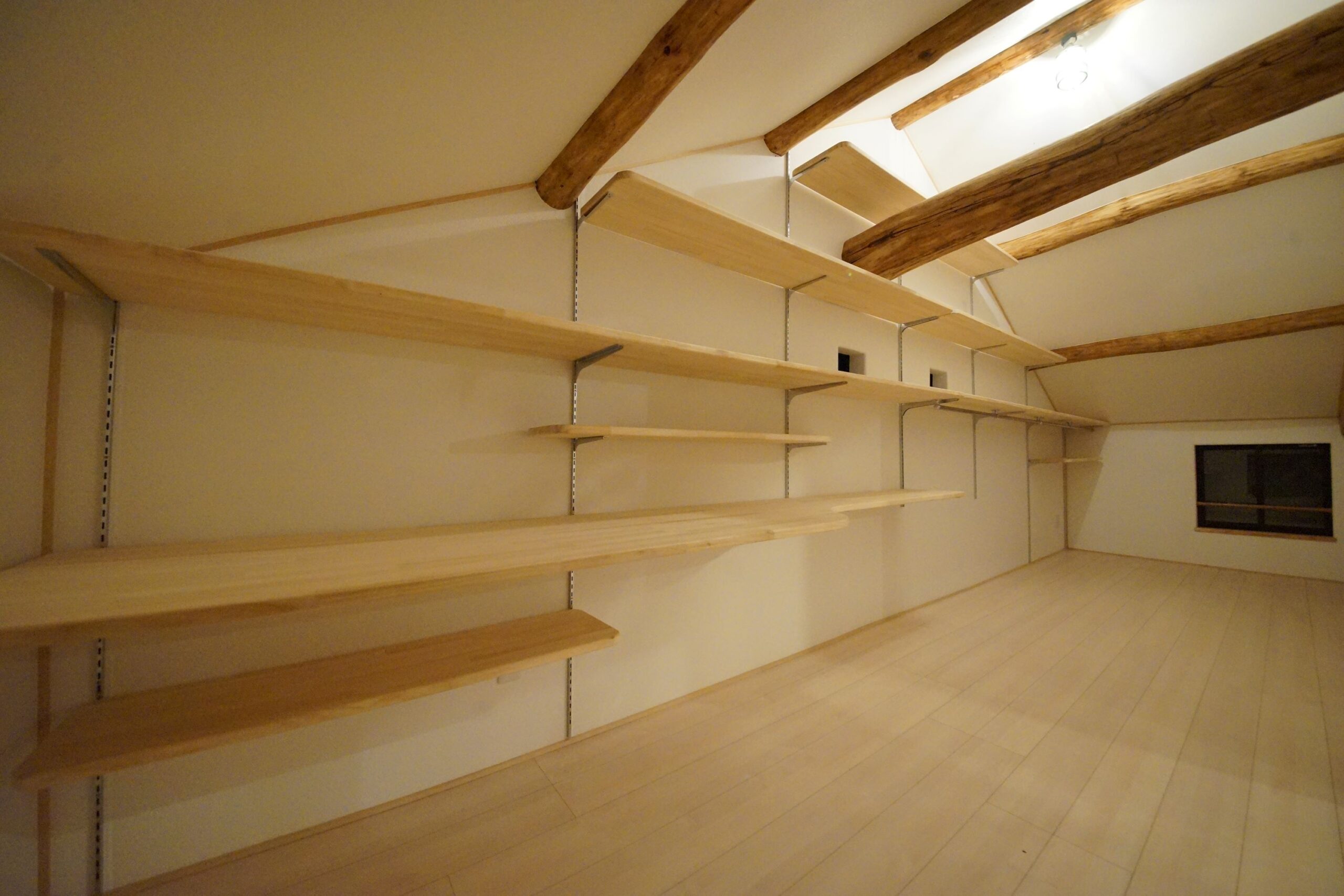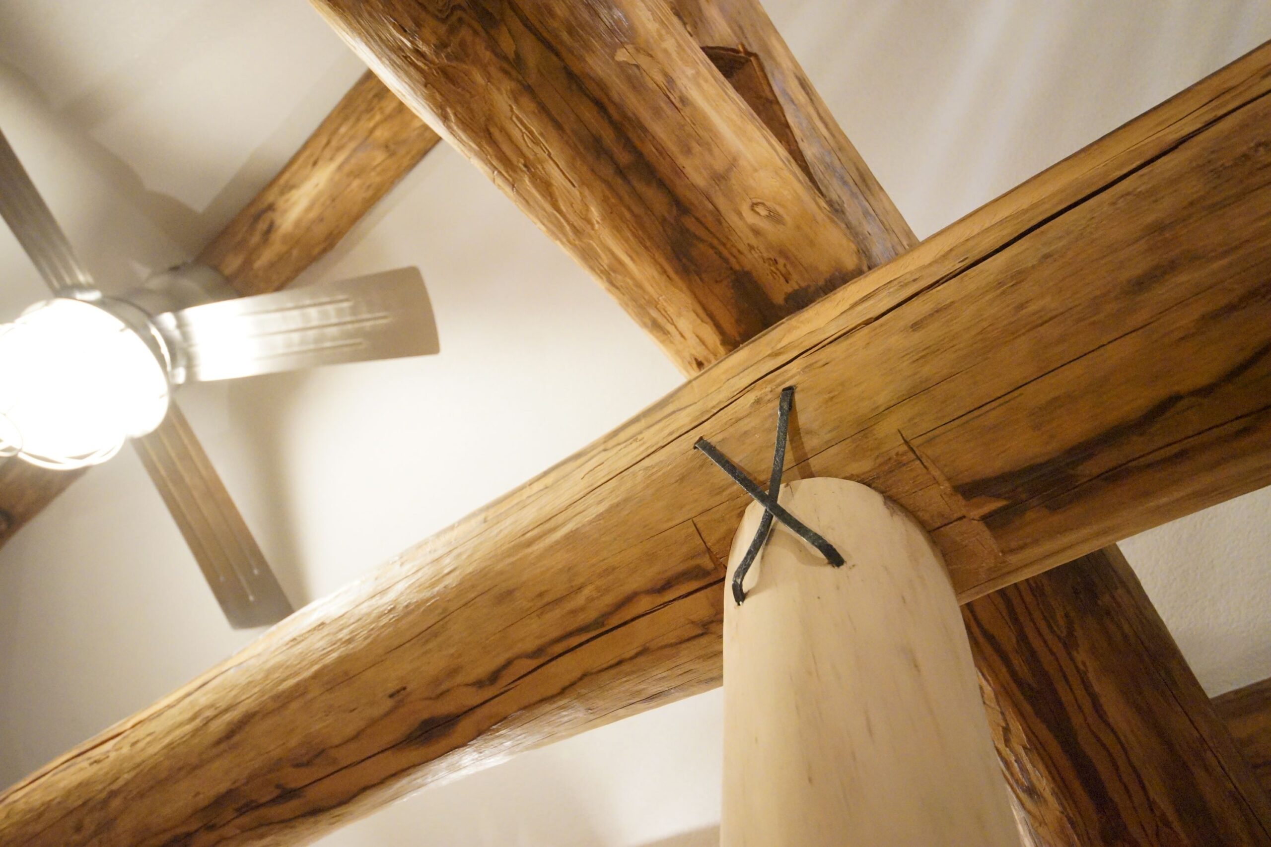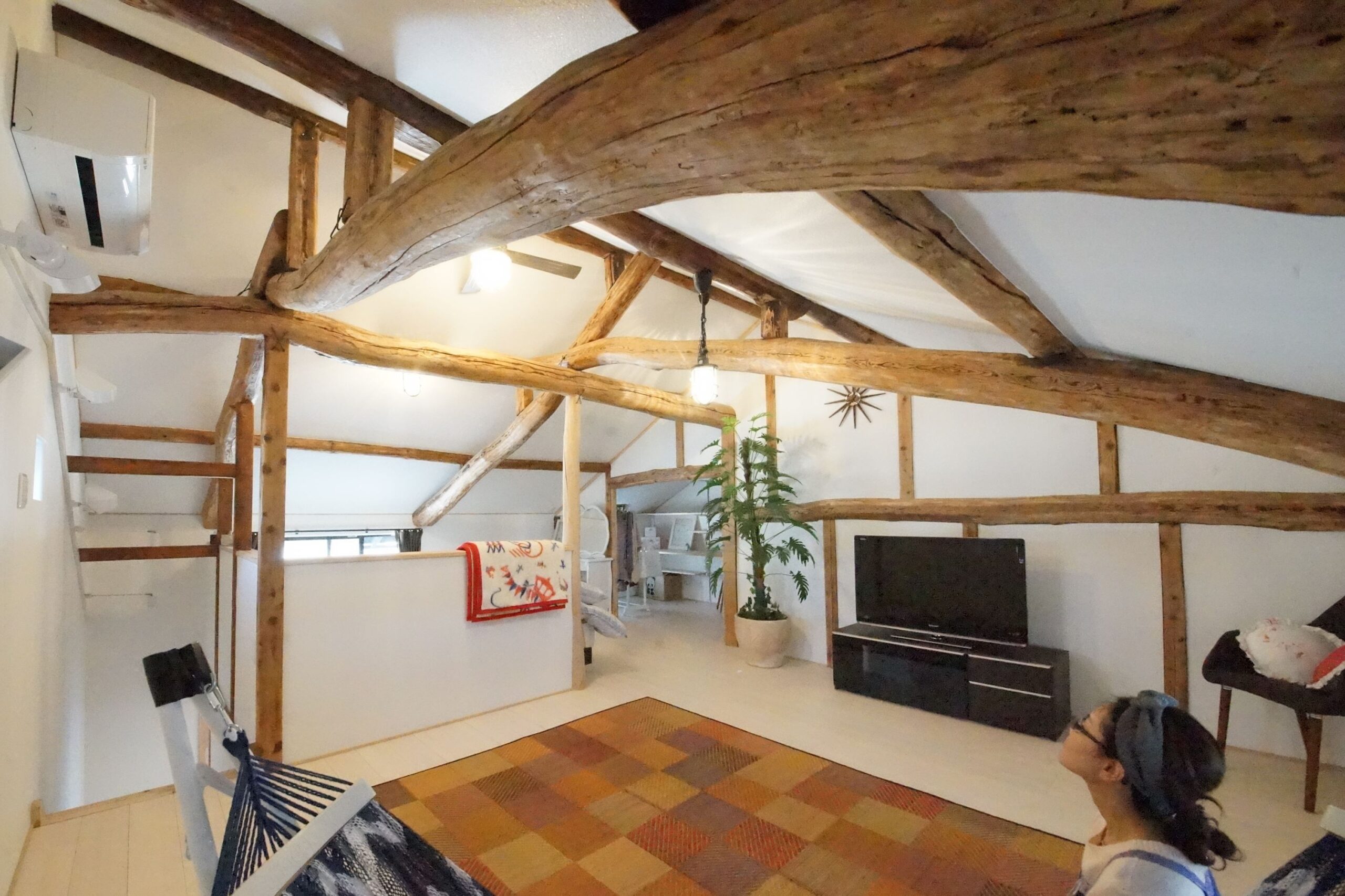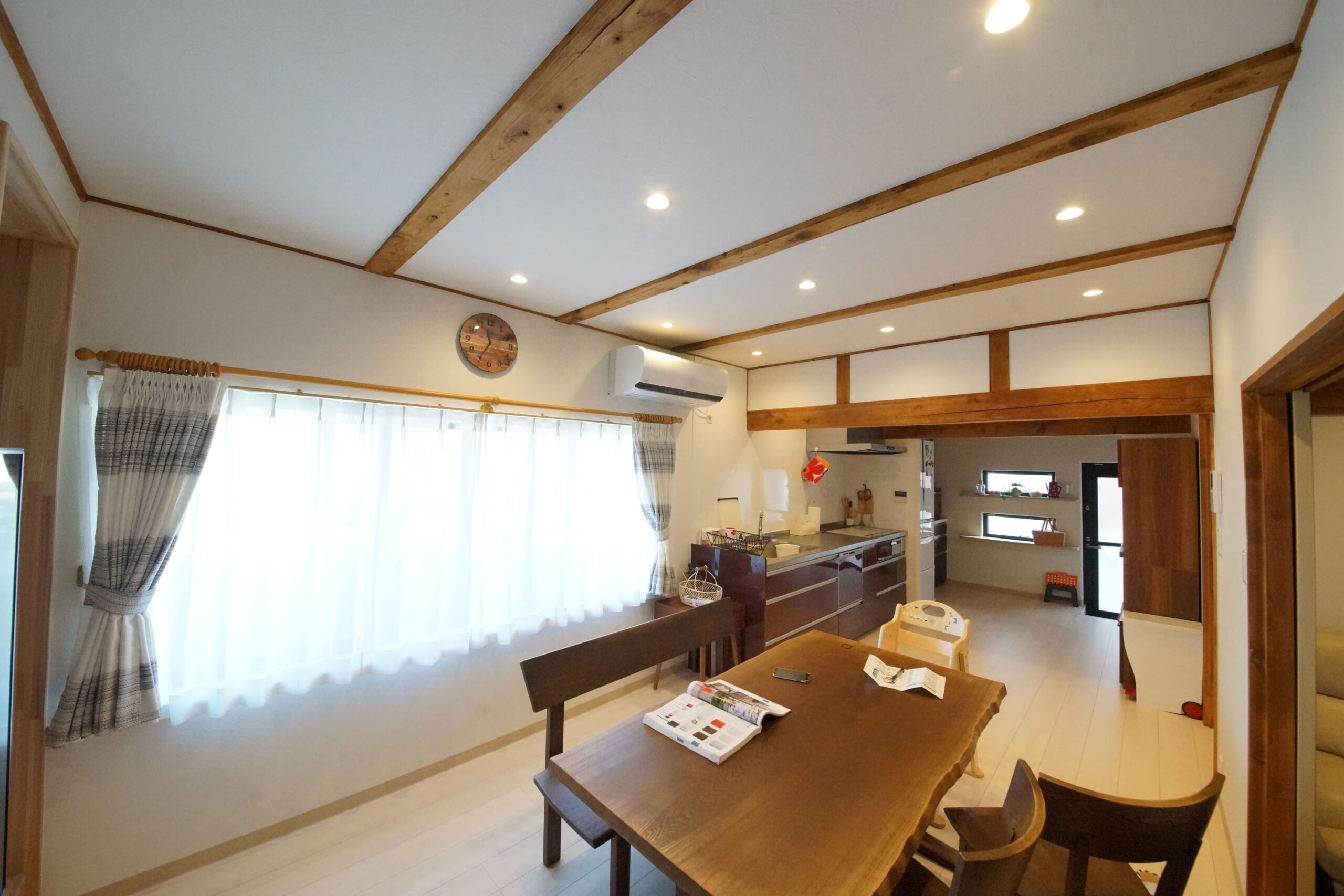 - 梁がむき出しのダイニング。雰囲気作りと天井高の確保