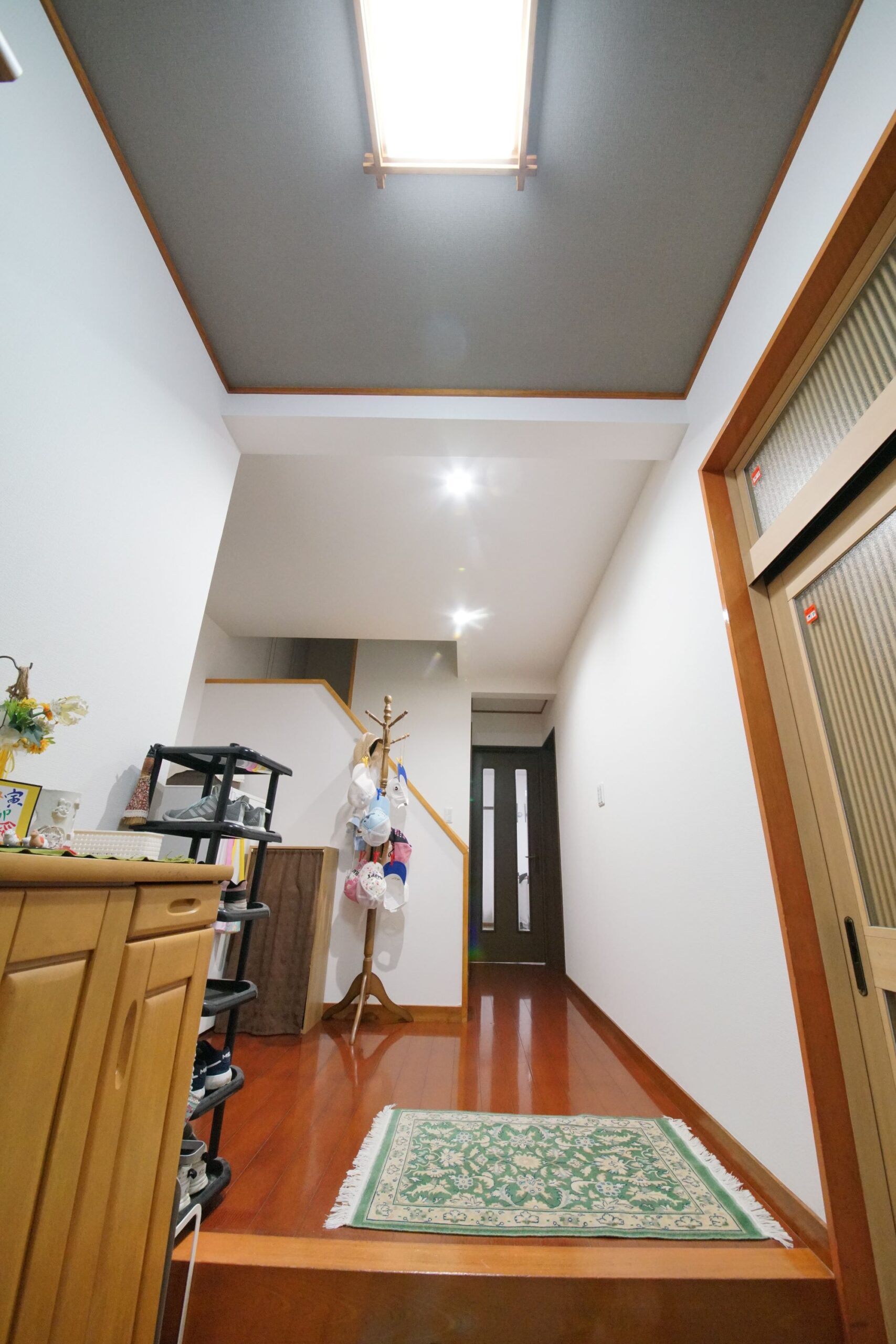 - 【リモデル後:玄関】手前の天井色を濃くして 錯覚で向こうが高く感じるように工夫