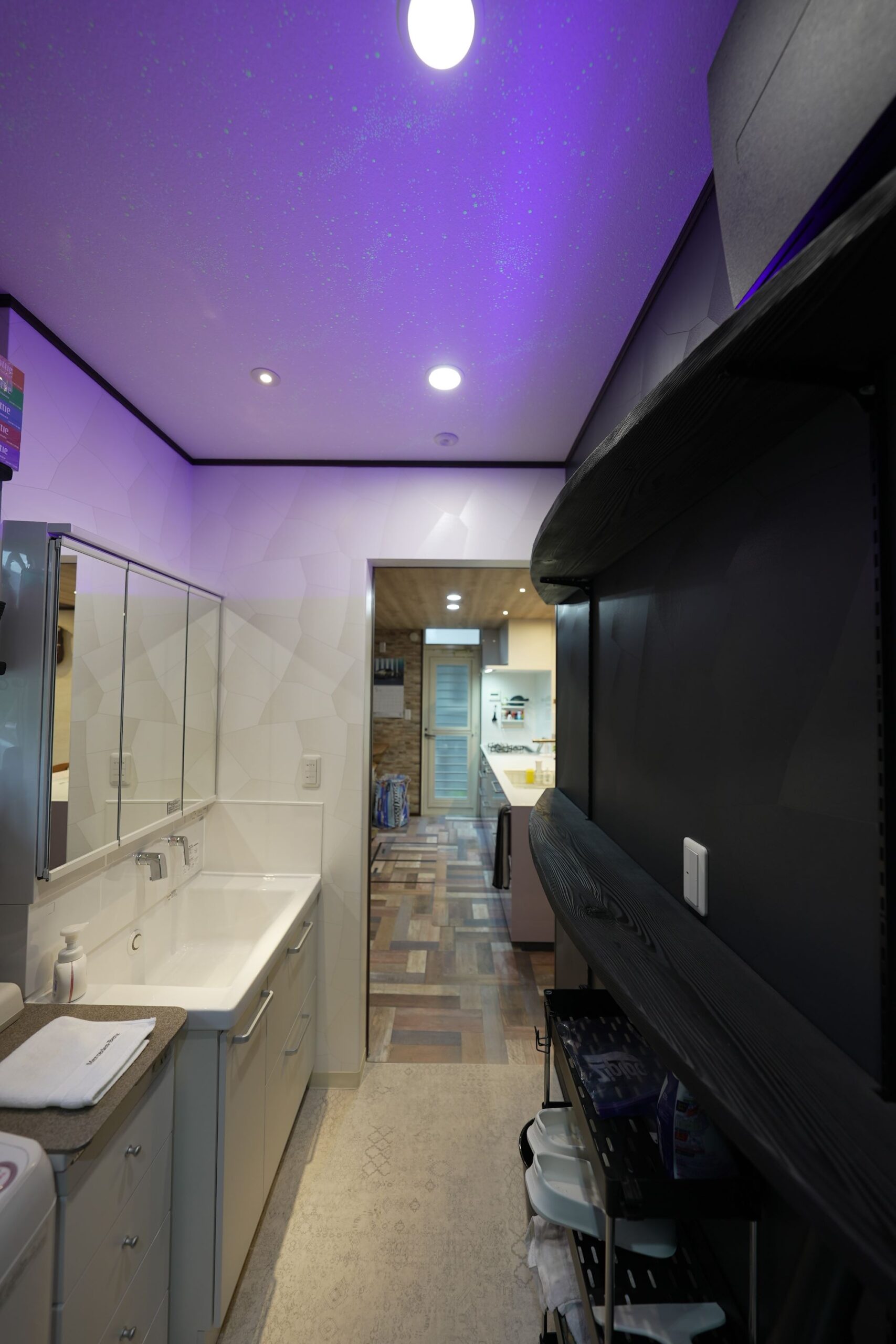 空間仕様 【キッチン・リビング】床:サンゲツ(Hフロア)・壁:サンゲツ(ファイン・石塗り)・天井:サンゲツ(ファイン・木目)【洗面所】床:サンゲツ(Hフロア)・壁:サンゲツ(リザーブ)・天井:サンゲツ(リザーブ・蓄光)