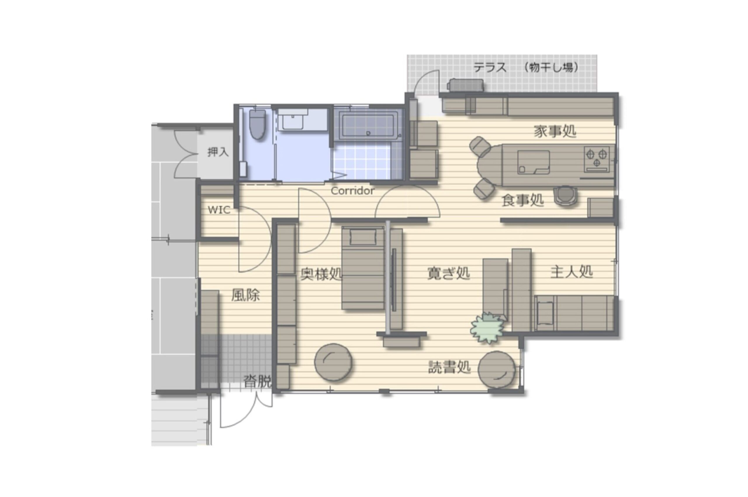 廊下より南側が、収納棚や腰壁で緩やかに間仕切っただけの大空間になって感動しました。