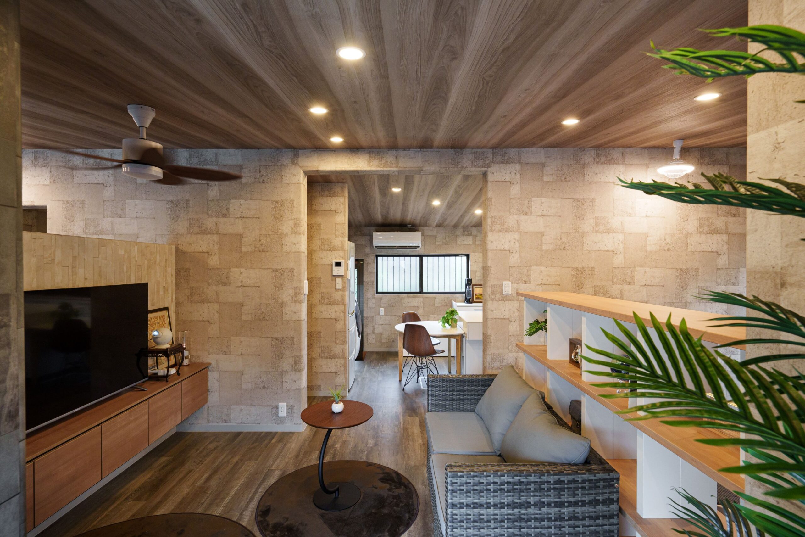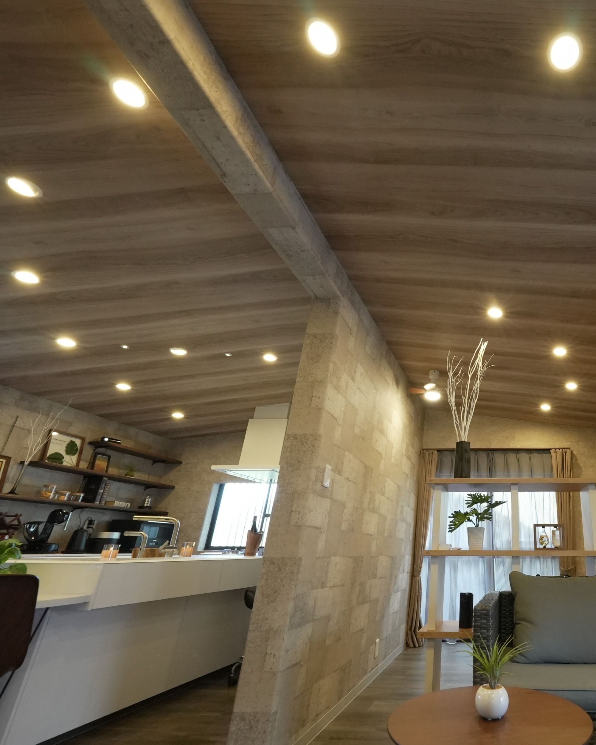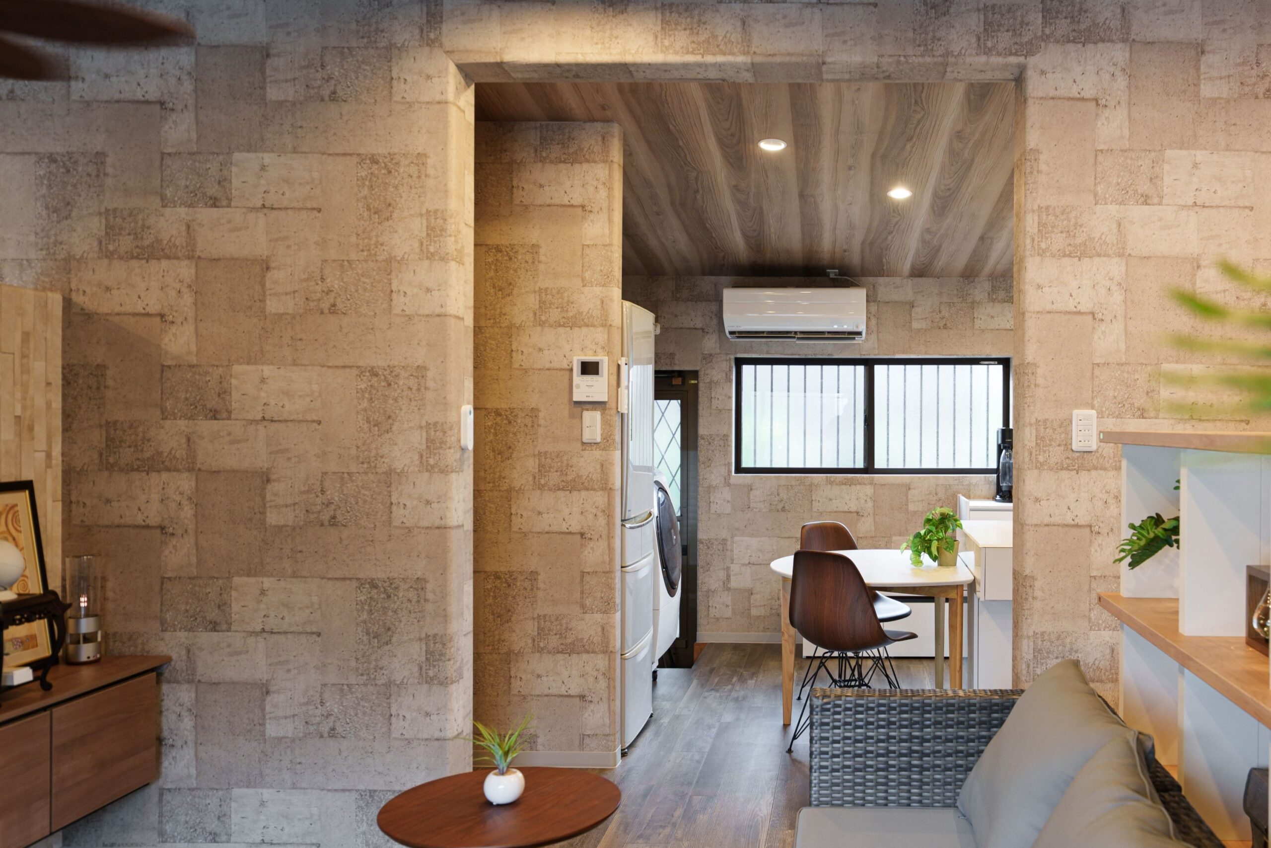 - 素材感 存在感のある内装材を使用。色調を揃えて圧迫感がないよう配慮