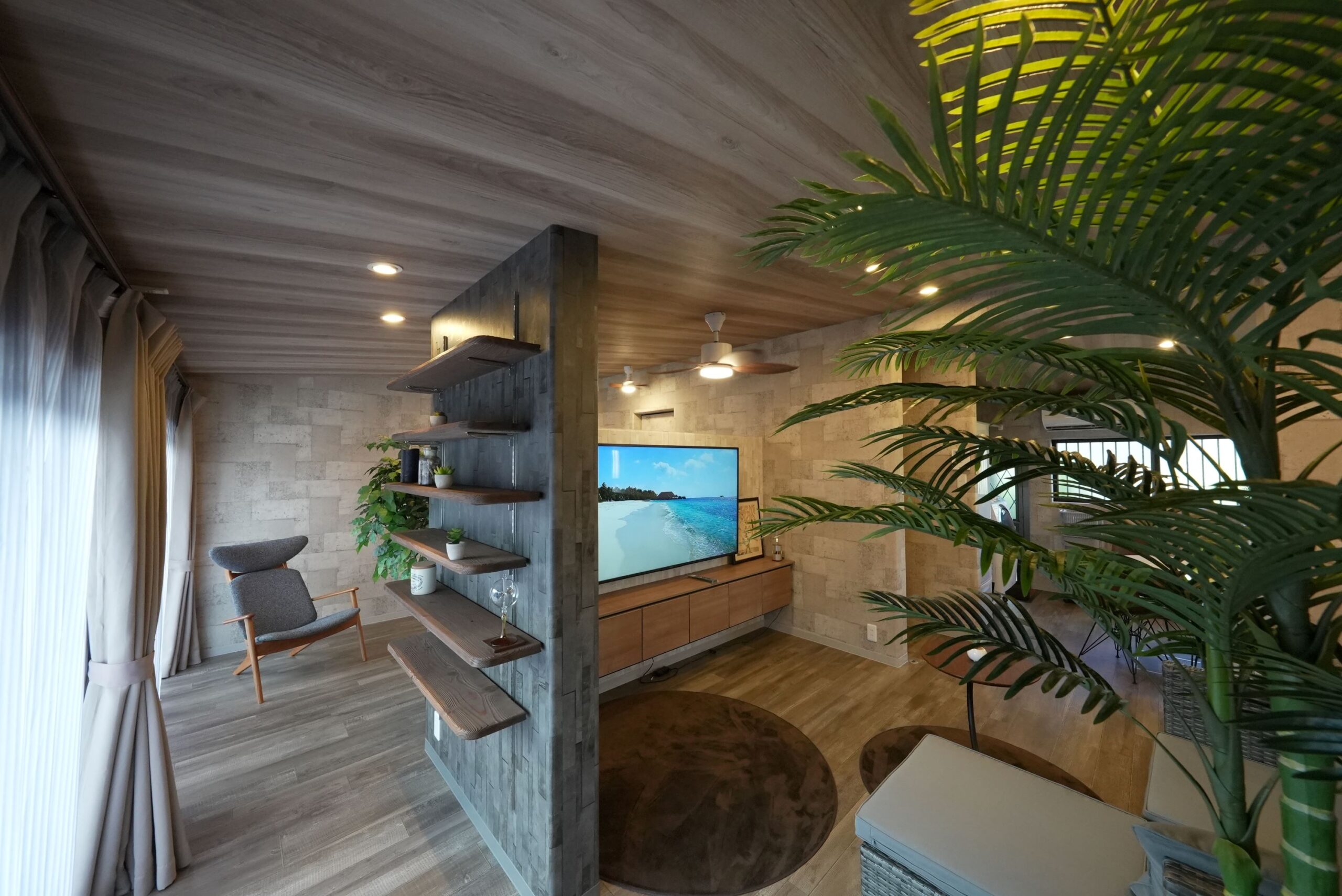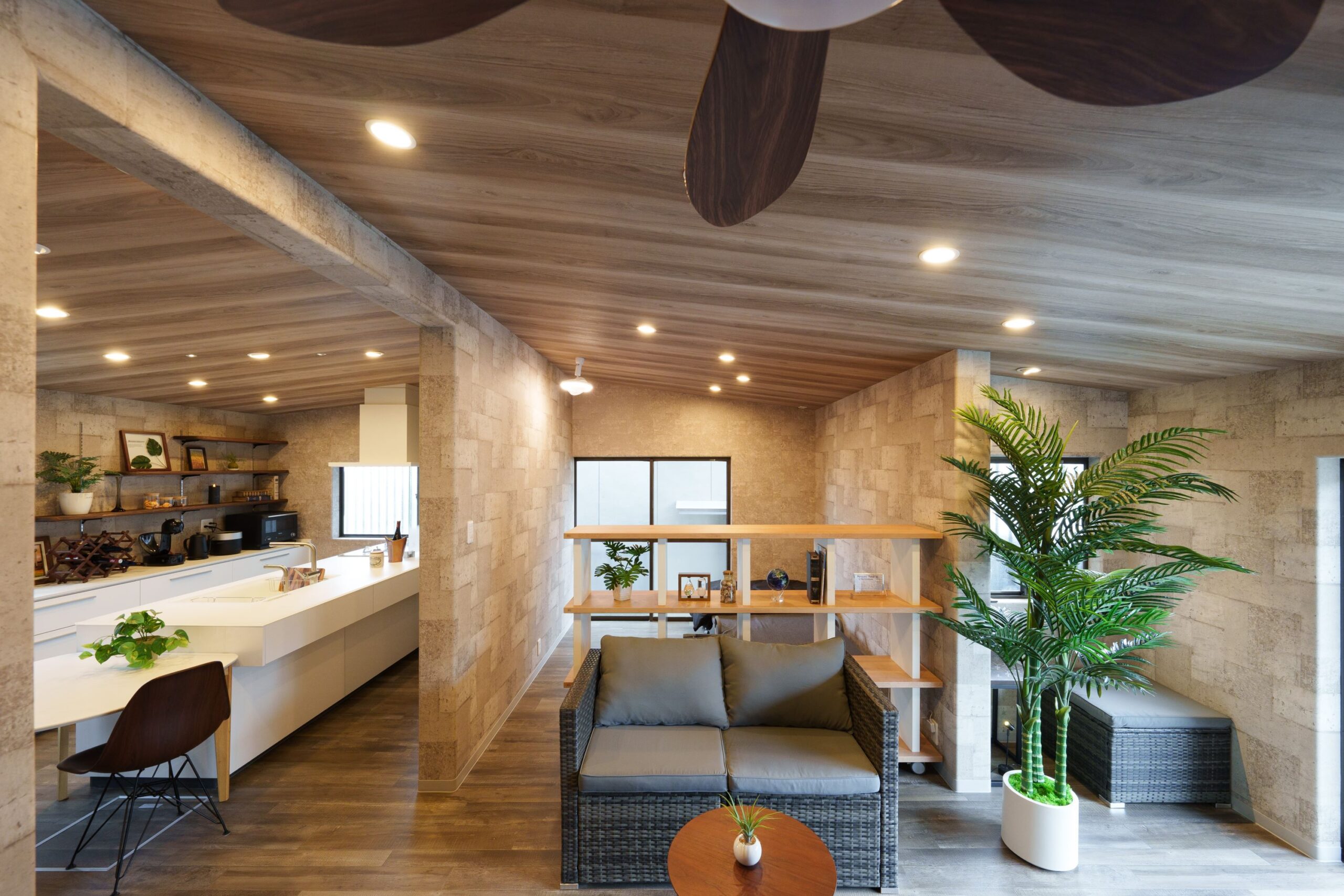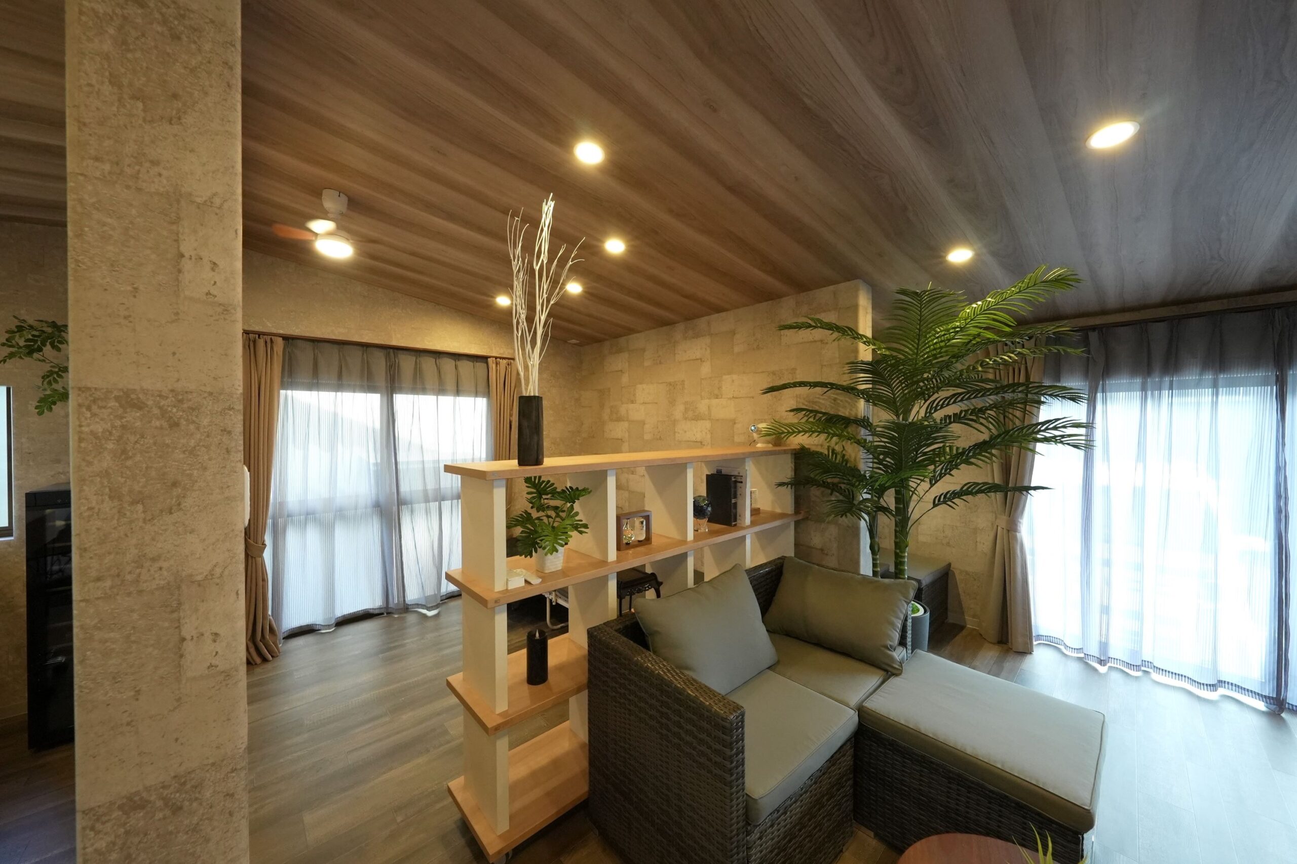 - 素材感 存在感のある内装材を使用。色調を揃えて圧迫感がないよう配慮