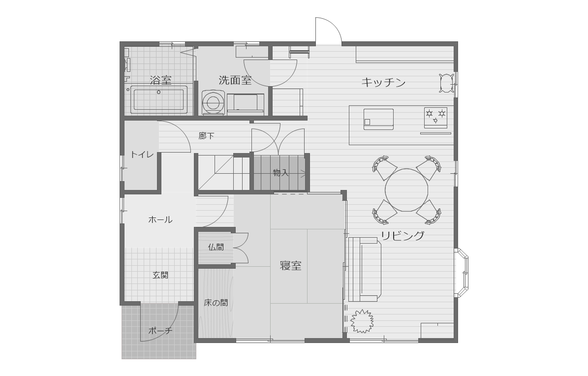 部屋に入った瞬間、視界が広がり、開放感に包まれる心地よさ。扉を開ければ、お風呂・洗面所・寝室がひとつの空間となり、空調も一台で快適に。家全体が広く感じられ、気持ちまで明るくなりました。