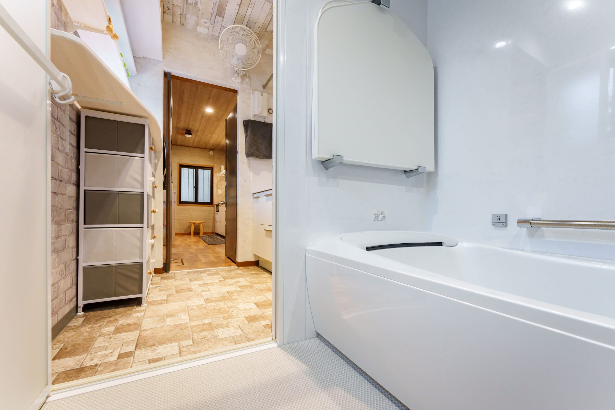 お子様の巣立ち後を想定し、寝室を1階へ移す計画の第一歩として、寒さや動線の不便さを解消する浴室・洗面のリフォームをご提案。