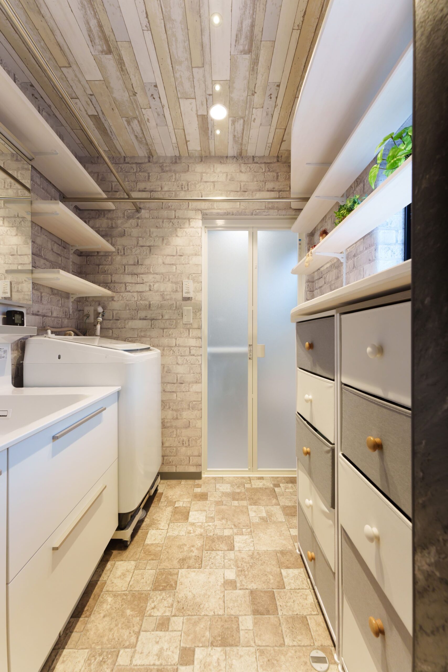 収納は洗面所に集約し、サイズを揃えた美しい仕上がり。物が多くてもすっきり整い、毎日の支度も快適です。