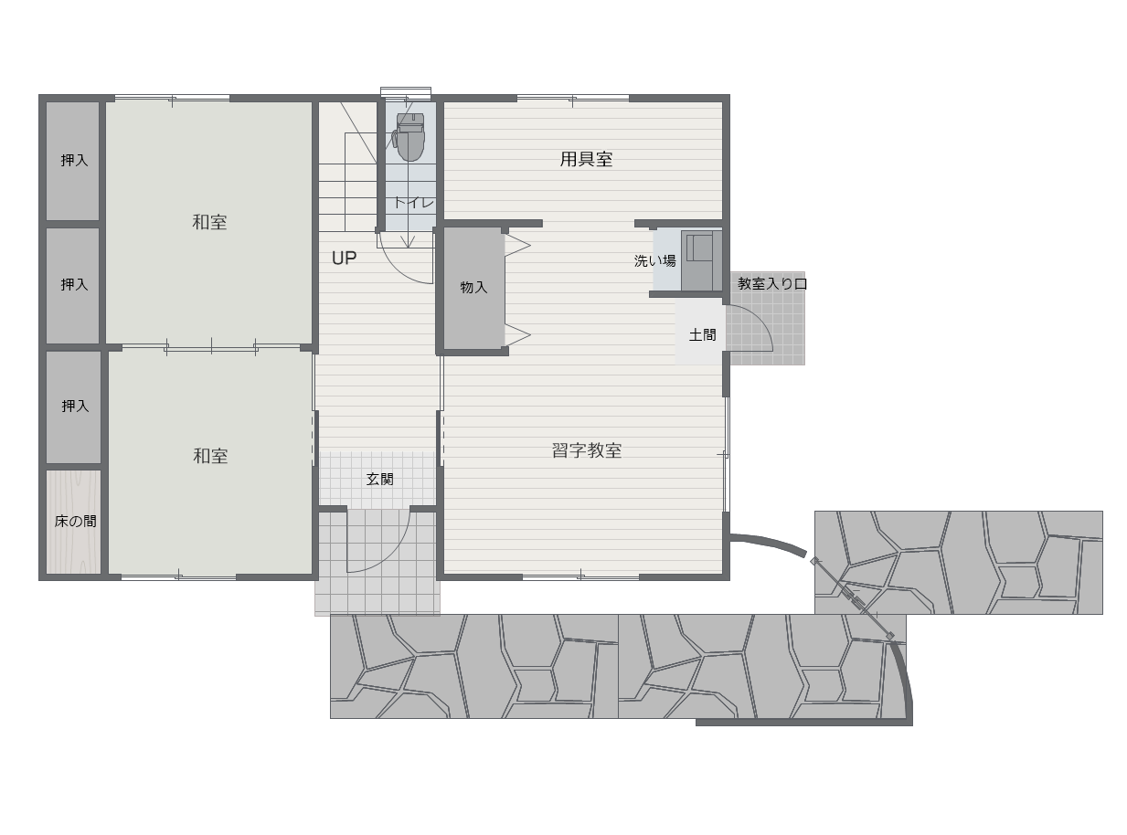 雨天時に水たまりや滑りの危険性もあり、割石のアプローチだけだと、足元に不安が残る状態。